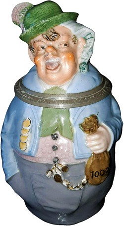 "Moneybags" Character stein #3403, (ECS185) having both impressed and inkstamp marks of the 1886 - 1952 era.