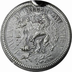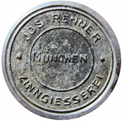 Cast mark on lid of Lowenbräu Keller München stein, circa 1890.