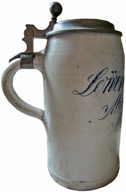 Cast lid on Lowenbräu Keller München stein, circa 1890.