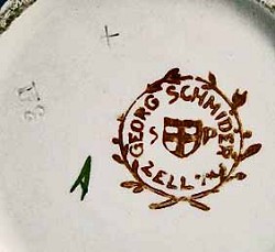 The factory was founded in 1859, with Georg Schmider taking charge in 1897. Due to the success of the designs created by Karl Schöner and Elisabeth Schmidt-Pecht, in 1898 he took over the premises of Haager, Hoerth & Co. to add greater capacity. In 1925 they employed 500 workers. Georg Schmider died in 1930, & the company was taken over by his son-in-law Heinrich Haiss, whose descendants ran it successfully until 1990. The company is still in existence today, known as Zeller Keramik Geschwister Hillebrand G.m.b.H.
