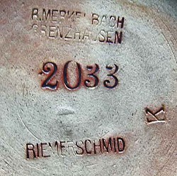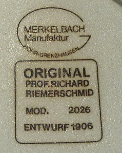 Reinhold Merkelbach:(1905 catalogue) #1655(0.5Ltr) #1728(0.5Ltr) #1729(0.5Ltr, 3.5Ltr, 4.5Ltr) #1729g(0.5Ltr) #1734(4.5Ltr) #1741(0.5Ltr, 1.0Ltr), #1757(0.5Ltr) #1758(3.5Ltr) #1769((3.3Ltr) #1770(0.5Ltr, 2.5Ltr, 4.0Ltr) #2024, #2026, #2033