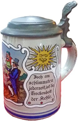 He first became registered as a pewterer in 1877. By 1880 he had qualified as a master pewterer. and his address was Untere Grassersgasse 4 (now Grasersgasse), with a workshop at Kaiserstrasse 20. By 1905 his address was Bleichstraße 25. His latest work recorded was in 1939.