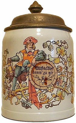 Villeroy & Boch - Mettlach #1526. Dec.No.665."Made in Germany" Mercury mark. Dated 1891,on the base of featured stein.