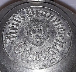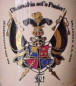 Cast pewter mark on the stein above, dated 1896, celebrates the 60th Stiftungsfest (Foundation Celebration) of the ChristlicheStudentenverbindung (C.St.V) Uttenruthia Erlangen.