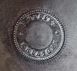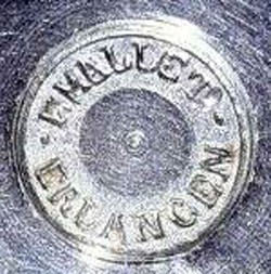 "F. Mallet, Erlangen"on the underside of pewter lid.