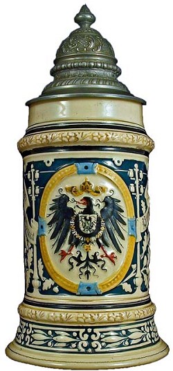 Featured stein by Reinhold Hanke #1265. but with reseller's impressed mark, dated c.1900.