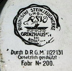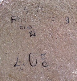 Poor impressed mark showing what is thought to be:"Rheinische Steinzeug""Grenzhausen"Mould No. 405
