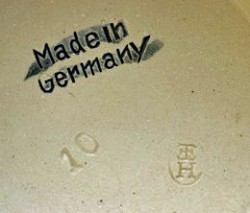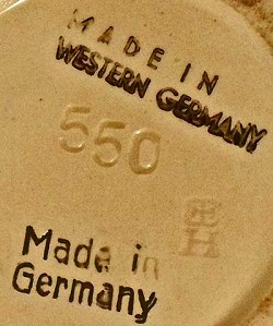 Impressed mark, without the surrounding oval, on featured stein immediately above. It is unusual having Impressed and inked "Made in Germany" plus "Made in Western Germany" ink stamp.
