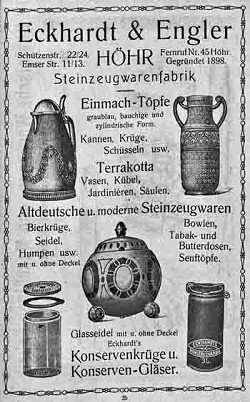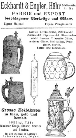 Steinzeug- und Glaswaren sowie Zinngiesserei / Stoneware manufacturer & glassware wholesaler as well as pewterer.