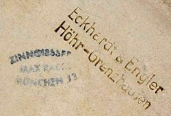 Impressed mark, post 1936, complete with the ink stamp mark of the pewterer (Zinngießerei), Max Rackl of Munich, who closed c.1940.