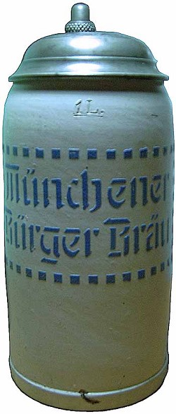 Münchener Bürger Bräu stein, possibly by Merkelbach & Wick, made prior to 1920.