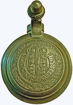 Lid of Münchener Bürgerbräu stein. This identical lid has been seen made by at least one other pewterer, e.g. Hugo Lindner