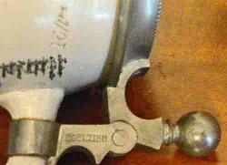 Pewterer's touchmark on the inside the tang affixing the lid of the featured V&B-M stein.
