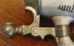 Pewterer's touchmark on the underside of the lid of the featured glass stein, above.