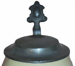 This stein has been identified as being manufactured by the Thuemler Manufacturing Co. due to the annular rings on the base, together with the size marking 12 U.S. fluid ounces.
