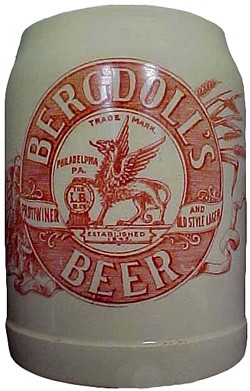 "Bergdoll's Beer - Protiwiner and Old Style Lager. The L.B. & Co. - Established 1856". This stein has been identified as being manufactured by the Thuemler Manufacturing Co. due to the similarity of the circular annular rings.