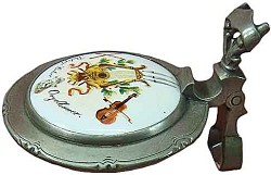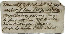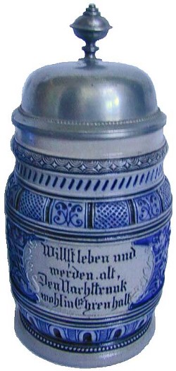 The glass stein on which this lid resides had the following note, see below, "This is the glass, used on the "Stammtisch" (table reserved for regulars), which belonged to your great-grandfather Johann Philipp Sieber, organ builder, born 8th June 1806 in Holzkirchen, Kreis (district of) Nördlingen, Bavaria".