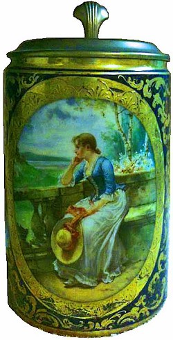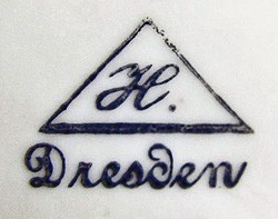 He was born circa 1866. He learnt his trade in Dresden, decorating in the Meissen and Vienna style, up until 1901. His earliest work seen so far is dated circa 1891. He departed Hamburg for the United States on 25 July 1901 aboard the "SS Deutschland". It is unknown, but he might have been lucky enough to obtain work straightaway from 1901, at the Ceramic Art Company which became Lenox Inc. in 1906. Certainly there are many examples of his work at Lenox. He was listed in the Trenton City Directory from 1906-1925, first as a decorator/potter, then a "clay doctor" and then as an osteopath using clay compresses to treat patients. He was a graduate of the American College of Naturopathy. The 1910 census shows he lived 21 miles away in Solebury, Bucks, Pennsylvania with his wife Heldah (also born in Germany) and with sons John (b.1906), George (b.1909) and daughter Bertha (b.19**).