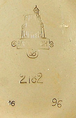 Basemark on featured stein showing mould number 2182 and dated 1896.