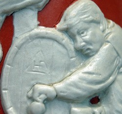 Another form of Fuch's artist's mark on a Villeroy & Boch - Mettlach relief stein.