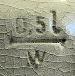 Impressed capacity and, and as yet unknown maker's mark on featured stein, shown right.