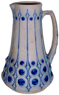 2 Litre serving jug #322, designed by Wilhelm Ratelbach for Alfons Wilhelm Lötschert. The accompanying 0.3 litres steins, can be seen on the Lötschert page and have the same #322 number.
