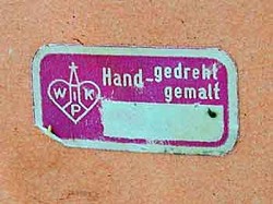 Impressed WK basemark (as shown on right), together with an identical paper label (as shown on left), on the Kagel jug above.