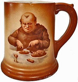 Another of a series of steins featuring monks eating and drinking. N.B.This handle is unique to this pottery.