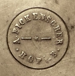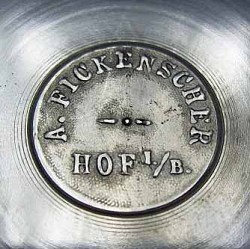 Cast pewter mark on the underside of a pewter lid.