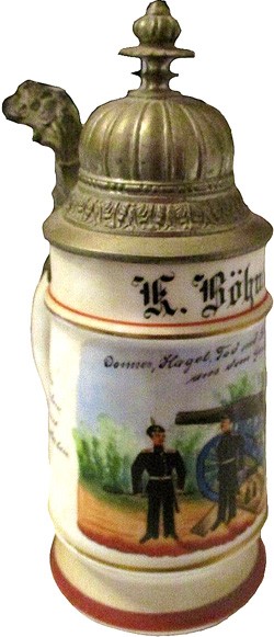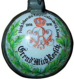 Lid insert of the stein, left, "Three cheers to the Reservists of the 12th Company". 1888 - 1891.