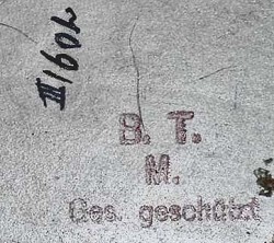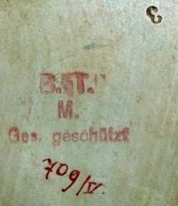 Decorator's base marks on the Brüder Thannhauser. München stein on the immediate left,