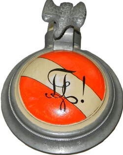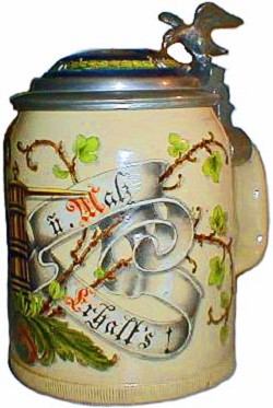 /2 litre Villeroy & Boch - Mettlach #1431, Student stein, dated 1895. On the side is the decoration date, "Escalade 1897". This denotes the annual Swiss fete, celebrating the defeat of the surprise attack on Geneva, by troops sent by Charles Emmanuel I, Duke of Savoy during the night of 11-12 December 1602.