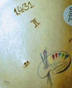 Pallette graphic with artist's signature N. Siméon on Villeroy & Boch - Mettlach #1431.