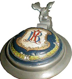 1Villeroy & Boch - Mettlach #1431, dated 1891 and decorated by N. Siméon and dedicated by him and his partner to their friend. Top, central is the lid of the featured stein.
