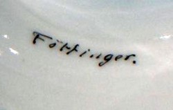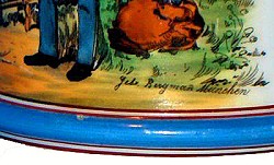 Signature denoting Gebrüder Bergmann, Munich on the featured stein. In old German handwriting, e.g. Kurrentschrift, the macron (dash) over the "n" in the above signature, translates as "nn" in modern text; hence "Bergmann".