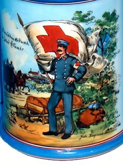 Partial image of a Red Cross Occupational Stein. Sold by Gebrüder Bergmann. Circa 1900-1910