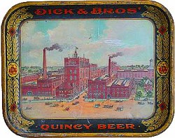 Dick Brothers Brewing Company. Quincy, Illinois. Founded in 1857 by Matthew, John and Jacob Dick. Dick Brothers Brewery was once larger than Anheuser-Busch in St. Louis, Missouri. Prohibition and the effects of WWII caused the brewery to be auctioned off under bankruptcy in 1951.