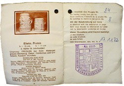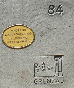Impressed "Grenzau" mark on base of reproduction Albert Jacob Thewalt stein, dated 1972, complete with aluminised sticker of the A.A.Importing Co.