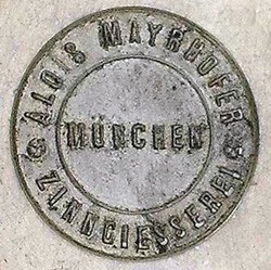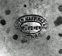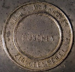 Cast pewterer's mark on underside of lid on the Thomas-Bräu brewery stein