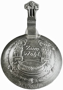 Touch mark on tang of lid on featured stein, "Zinngiesserei Ruhland Cham".