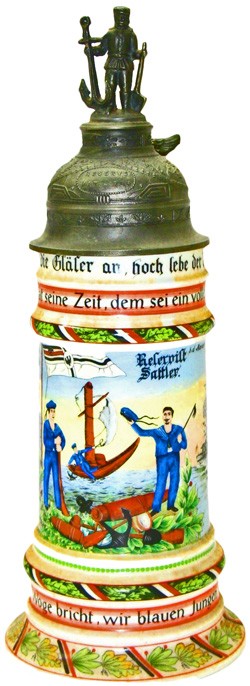 Label stuck to the underside of the lid of the featured stein.