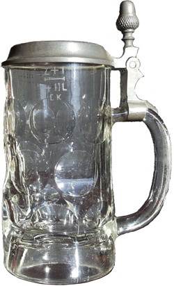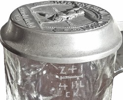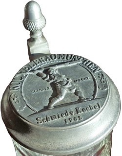 Cast mark on the underside of the lid on the Kochelbrau Munchen glass stein above.