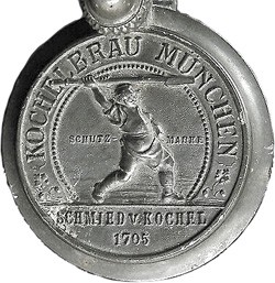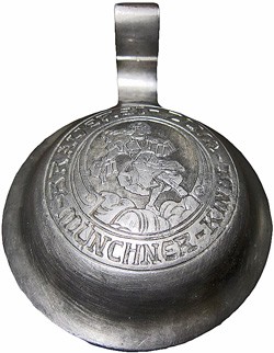 "Brauerei zum Münchner Kindl" Cast mark on pewter, dated 1932.