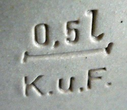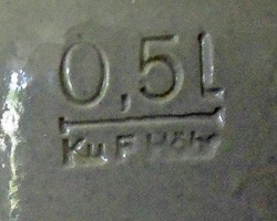 Combined capacity mark and maker's mark, just with "Kamp". Presumably, after the partnership of "Kamp und Ferdinand" had dissolved.