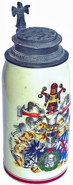 VII. Deutsches Turnfest München Ano Dom. 1889 Stein by Dorfner & Co. Base marked D&C.