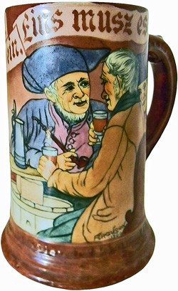 Base mark on featured stein.. Mark for William or Wilhelm Guérin & Co.. The French for William is "Guillaume", so I assume that most of their production was for export, otherwise it would be marked G.G.& Co. Mark dated 1891 - 1932.