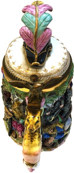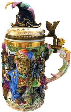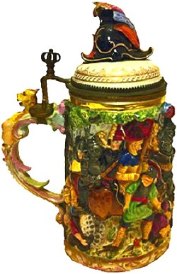 Stein with the same pattern as the one on the right, in different colours and using an Imperial Eagle as a thumb lift.Note, The lid is on at 180 degrees to the other lid.