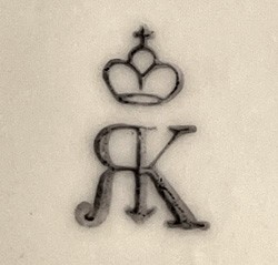 An "RK" mark on the bottom half of what appears to be a decorated butter dish. The authenticity is as yet unproven.