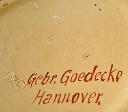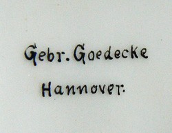 Founded in 1883 by the Goedecke brothers, August and Ferdinand. In 1888 their address was Schmidstraße 37 and in 1894, Steinthorstraße 18, with eight employees, finally moving to Georgstraße 40, by 1906. The business of Gebrüder Aug. & Ferd. Goedecke became the Hannover branch of
