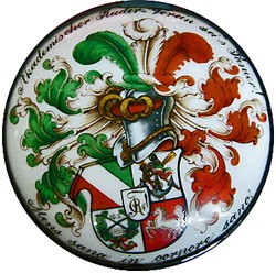 / Coat of arms decoration on glass and porcelain, porcelain and glass distributors. Studio for craft work.